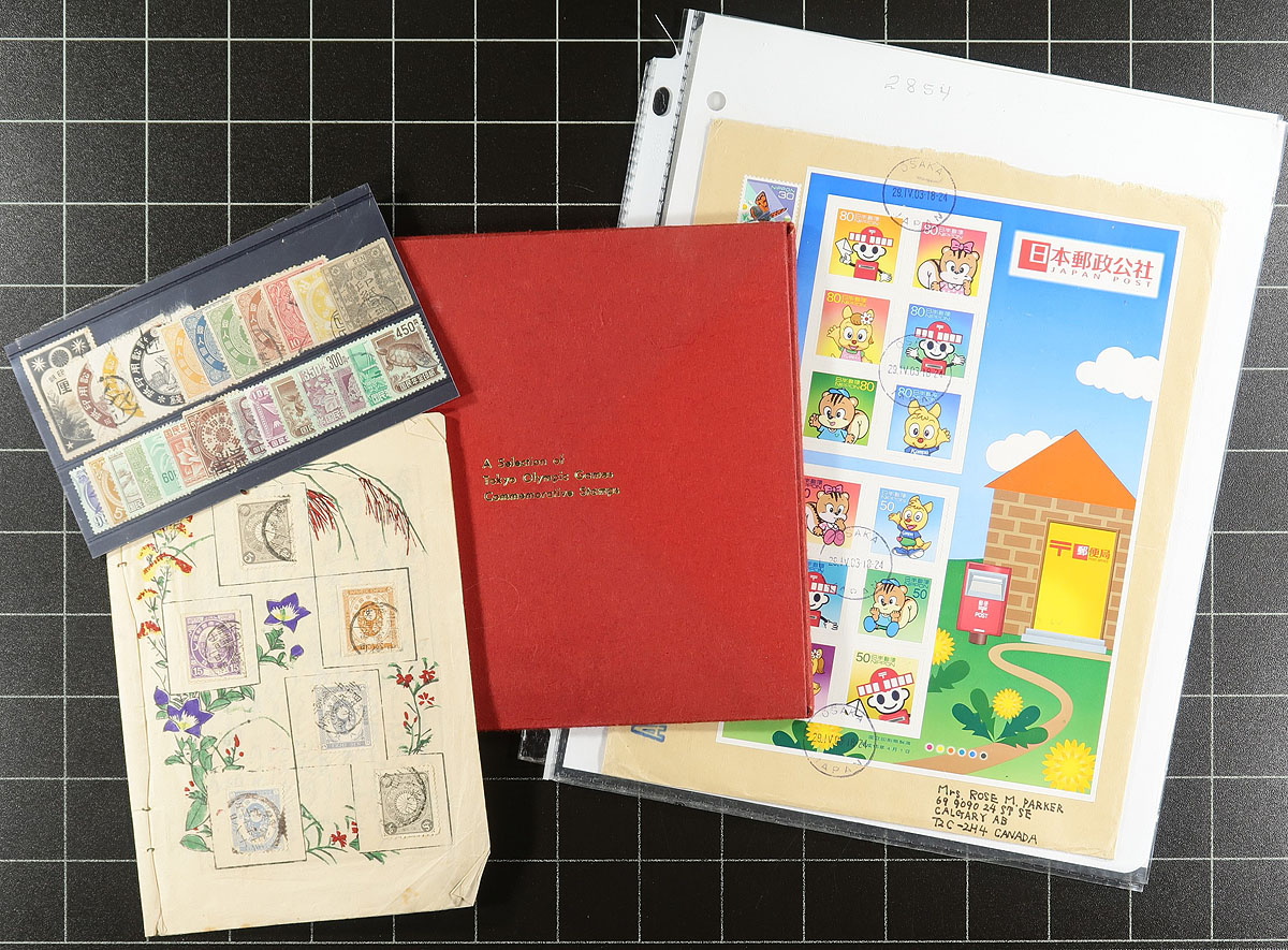 This estate balance includes a diverse group of year sets, bidboard lots and dealer offerings, creating a bundle of philatelic chaos, with both potential and value. The annual folders include 1959, 1968, 1980, 1987 plus a presentation folder from the 1964 Olympics. There is some pockets of nice mint material from the 1960's to the 1990's (the face value adds up quickly). And then there is a mix of mint and used material with no particular rhyme or reason, right up to about 2004. Happy hunting! Estimate =