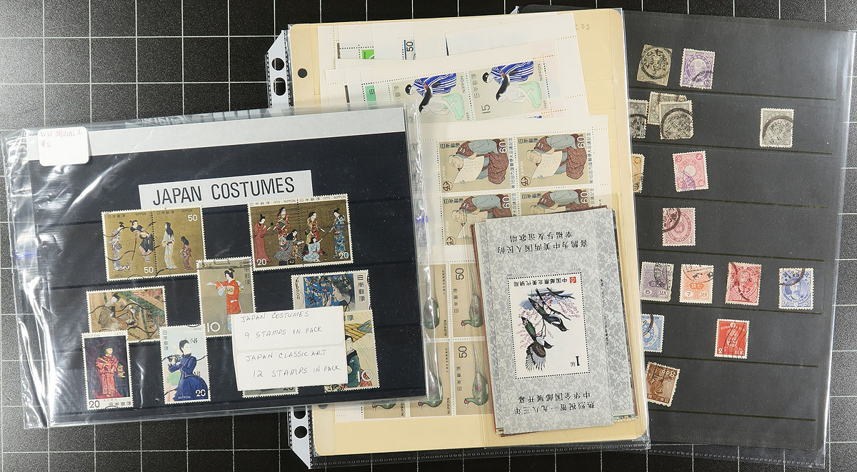 This estate balance includes a diverse group of year sets, bidboard lots and dealer offerings, creating a bundle of philatelic chaos, with both potential and value. The annual folders include 1959, 1968, 1980, 1987 plus a presentation folder from the 1964 Olympics. There is some pockets of nice mint material from the 1960's to the 1990's (the face value adds up quickly). And then there is a mix of mint and used material with no particular rhyme or reason, right up to about 2004. Happy hunting! Estimate =