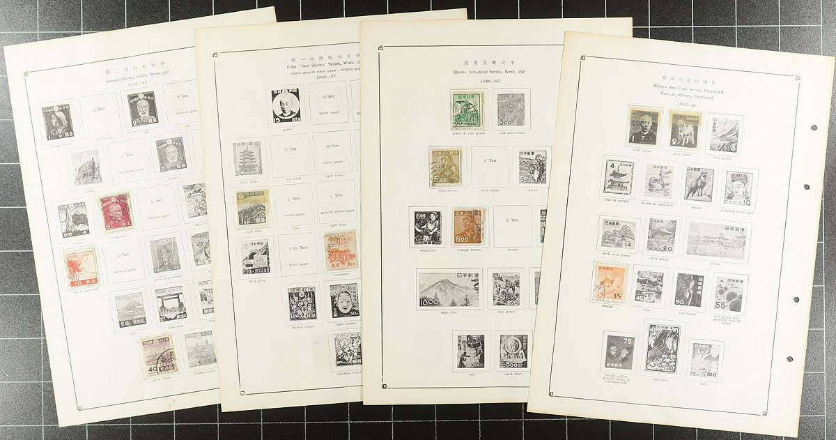 This estate balance includes a diverse group of year sets, bidboard lots and dealer offerings, creating a bundle of philatelic chaos, with both potential and value. The annual folders include 1959, 1968, 1980, 1987 plus a presentation folder from the 1964 Olympics. There is some pockets of nice mint material from the 1960's to the 1990's (the face value adds up quickly). And then there is a mix of mint and used material with no particular rhyme or reason, right up to about 2004. Happy hunting! Estimate =