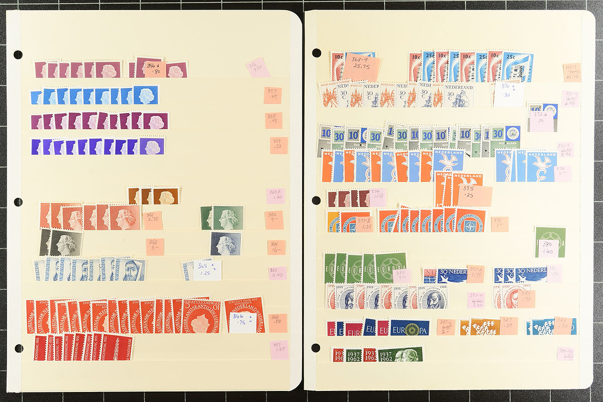 A well-organized mint accumulation of mint issues from the early 20th century up to the Euro era, with better throughout such as: #95 (x3), #216-225B (x2), #294-299 (x2 to 6 of each), #315 (x3), #327 (x2). Up to a dozen of a type, with each identified by Scott number and (2016) catalogue value, on about 25 manila stockpages. Build your collection, sell online. The catalogue value of this holding will add up. (Note: Collector built, not a dealer stock, this has never been seen by the public before). Estimate =