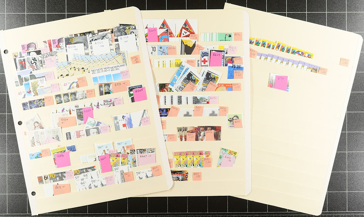 A "back of the book" mint accumulation on 27 manila stockpages with a wide range of issues, generally up to a dozen of a type all identified and catalogued by Scott. Some better includes #B276-280 and #B271-295 (6 sets of each), #J75, #J82, #J102, #O1-O7. Overall condition is quite good with few faults to be expected. Substantial value here. Estimate =