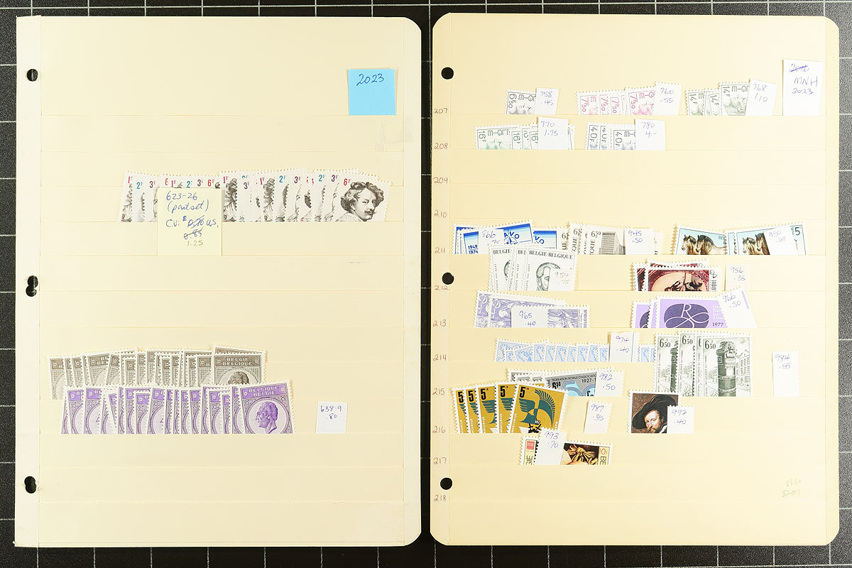 Twenty manila stockpage collector’s accumulation of mint regular issues and extensive "back of the book", with each stamp identified by Scott and 2023 catalogue values. Most are under $5.00 each, but includes better singles and sets such as #B30, B152-153, Q11, Q15. There are a couple of forgeries and a card of Telegraph and Telephone revenue stamps to spice things up. First time on the market. Estimate =
