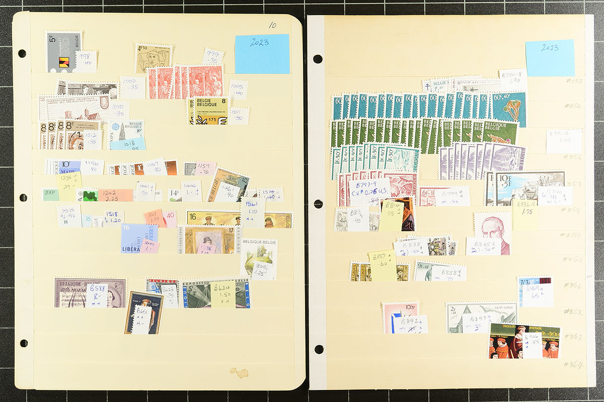 Twenty manila stockpage collector’s accumulation of mint regular issues and extensive "back of the book", with each stamp identified by Scott and 2023 catalogue values. Most are under $5.00 each, but includes better singles and sets such as #B30, B152-153, Q11, Q15. There are a couple of forgeries and a card of Telegraph and Telephone revenue stamps to spice things up. First time on the market. Estimate =