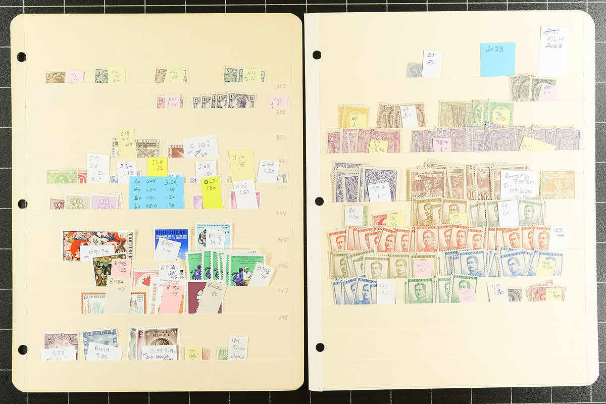 Twenty manila stockpage collector’s accumulation of mint regular issues and extensive "back of the book", with each stamp identified by Scott and 2023 catalogue values. Most are under $5.00 each, but includes better singles and sets such as #B30, B152-153, Q11, Q15. There are a couple of forgeries and a card of Telegraph and Telephone revenue stamps to spice things up. First time on the market. Estimate =