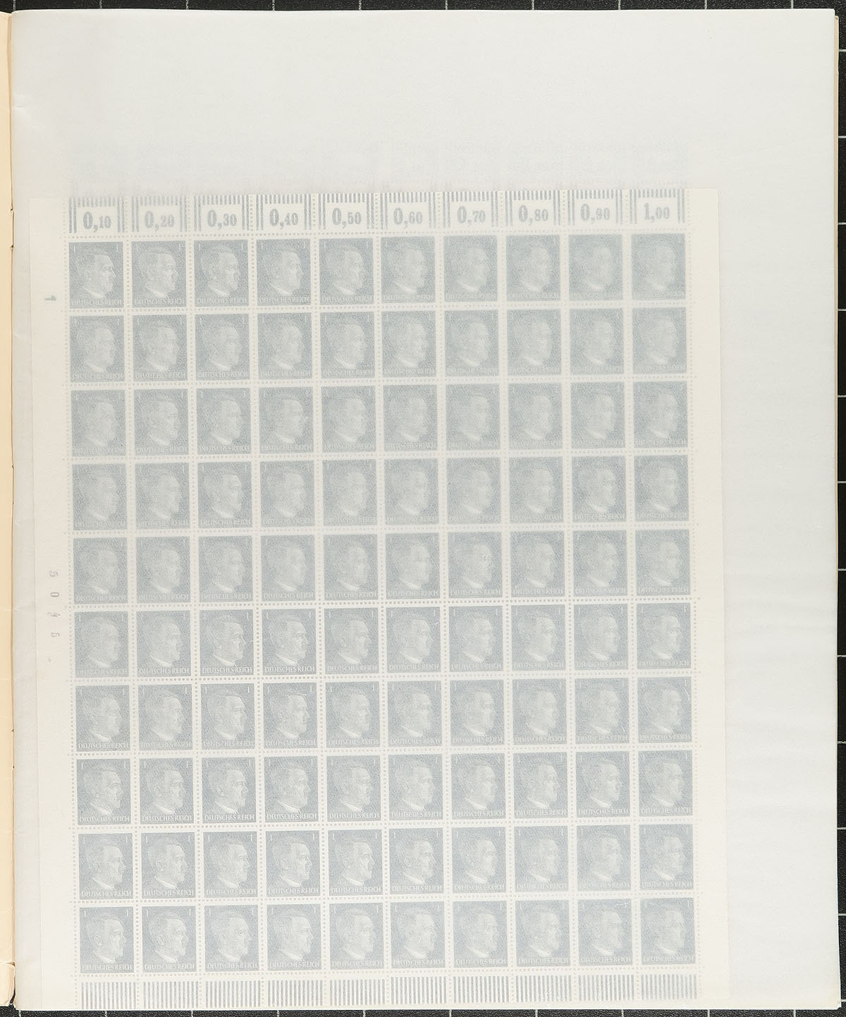 Complete panes in three stanzas. The first is a mint sheet file with a dozen Hitler panes (or half panes) between #506/529. The second is another mint sheet file with Germany and Berlin semi-postals in folded sheets of 100 (#B388/403, #9NB33-36), these catalogue over $300.00. The final part are several different hyper-inflation era "Official" sheets (1 to 10 of each), including overprints. All appear to be in very nice condition. Great eye appeal. Estimate =