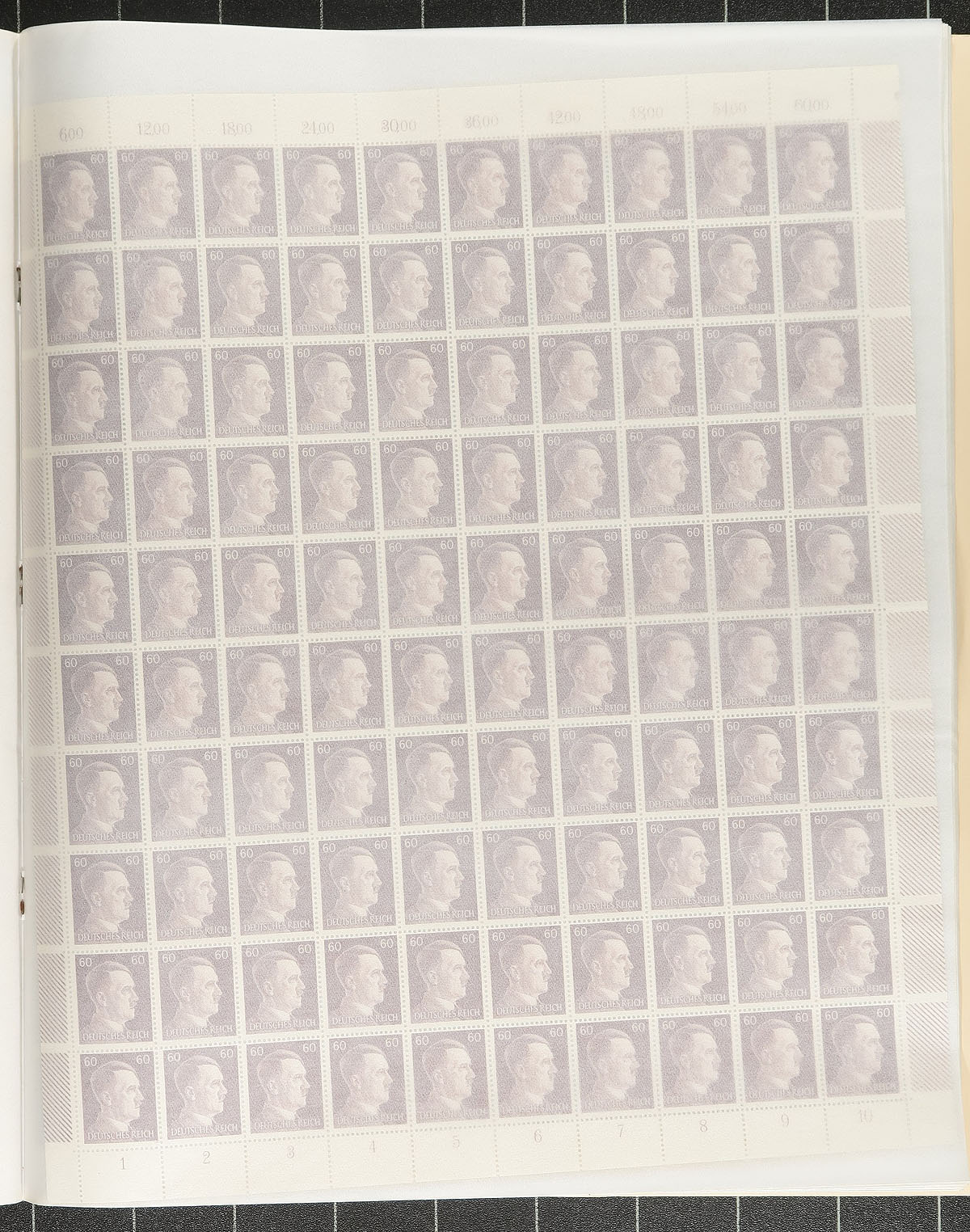 Complete panes in three stanzas. The first is a mint sheet file with a dozen Hitler panes (or half panes) between #506/529. The second is another mint sheet file with Germany and Berlin semi-postals in folded sheets of 100 (#B388/403, #9NB33-36), these catalogue over $300.00. The final part are several different hyper-inflation era "Official" sheets (1 to 10 of each), including overprints. All appear to be in very nice condition. Great eye appeal. Estimate =