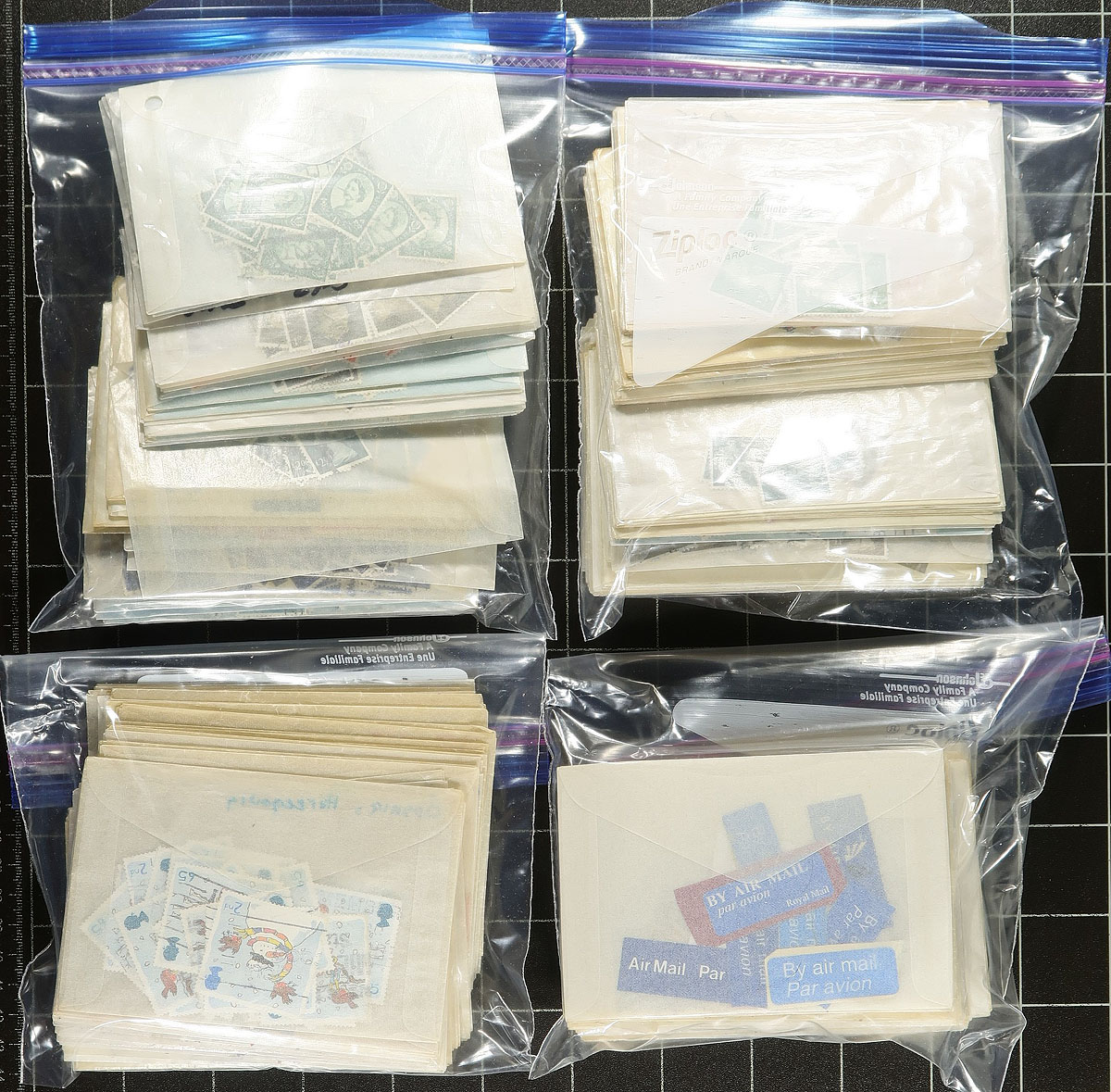 U-Haul box packed with freezer bags with assorted stamps, with about half on-paper (strength in Great Britain and Canada) and then there are many smaller bags with single country or worldwide off paper (a wide range of countries). Plus, there are two boxes of "102" cards with GB and New Zealand used material. While much of the material has been given a rough sort, there is still much to be discovered. As received from an estate. Estimate =
