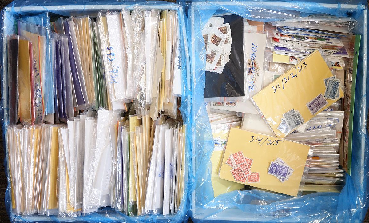 A pair of bankers boxes with an extensive used accumulation, covering almost a century, starting with the Admiral issue and going into the early 2000's. Mostly off-paper, and sorted and identified by stamp (many in small freezer bags), some in glassines. We have just given this a cursory look, and it is offered as received so there is potential for cancels and varieties. Thousands upon thousands of stamps. Estimate =