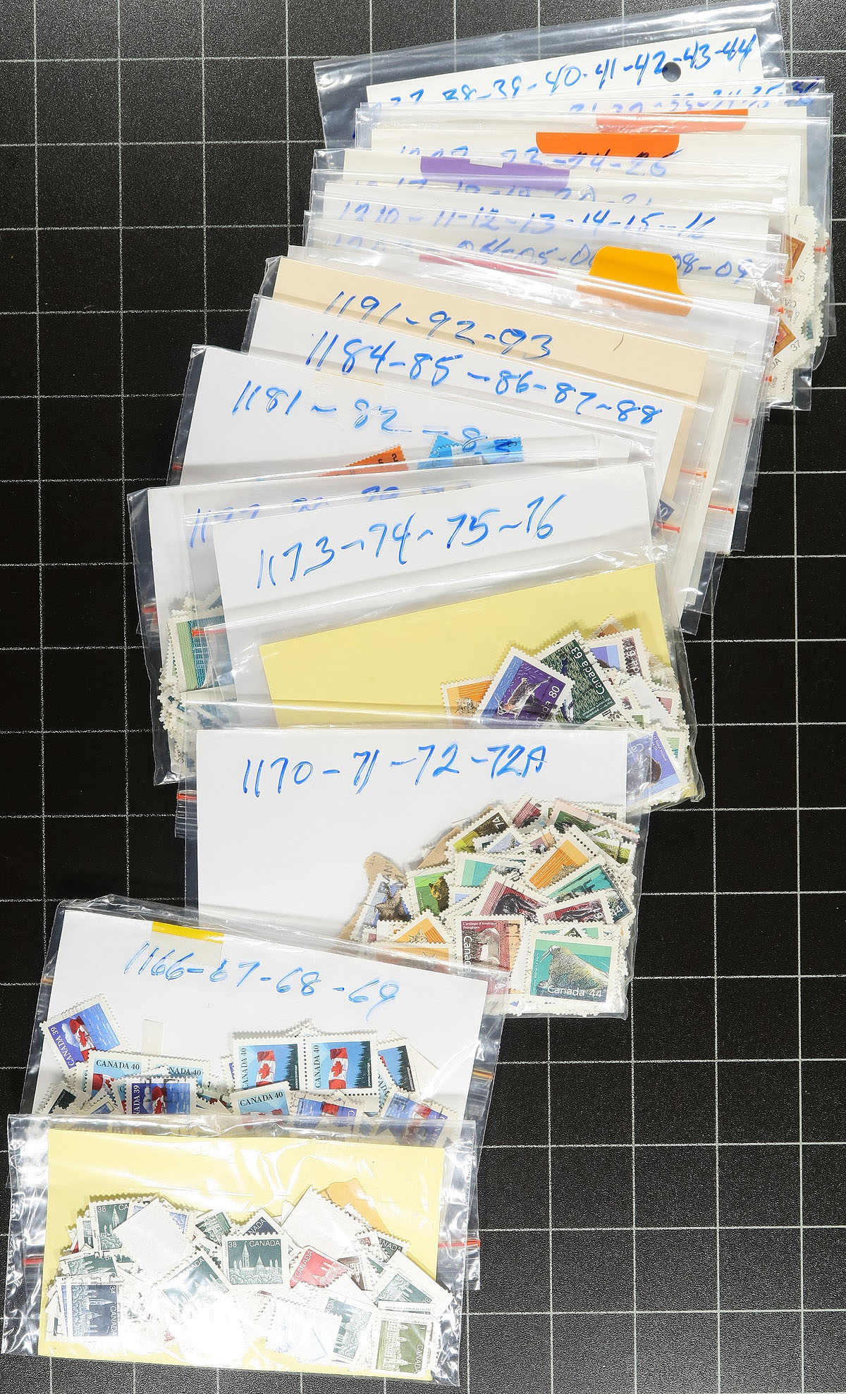 A pair of bankers boxes with an extensive used accumulation, covering almost a century, starting with the Admiral issue and going into the early 2000's. Mostly off-paper, and sorted and identified by stamp (many in small freezer bags), some in glassines. We have just given this a cursory look, and it is offered as received so there is potential for cancels and varieties. Thousands upon thousands of stamps. Estimate =