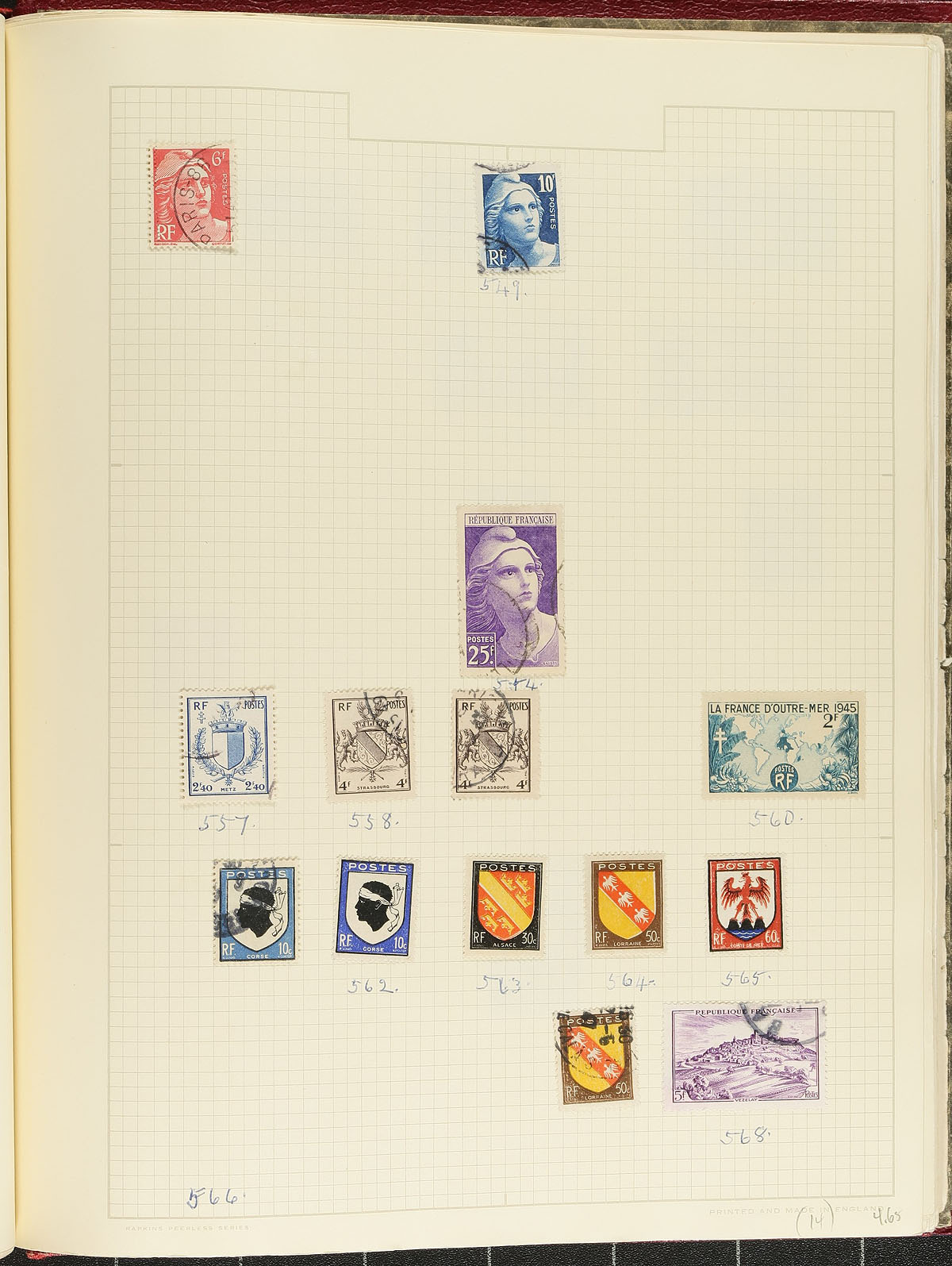 Bankers box with an assortment of Europe-strong albums (but with representation from other regions). In no particular order are a couple of groups of Russian/USSR material, a bit of French material, an old KABE album with a Swedish collection, and a Scott Specialty album holding some Denmark material, plus a stockbook of topical-rich material. There is also a bit of British Commonwealth and three albums with various quantities of worldwide material. Lots of stamps and there could be lots of hidden gems throughout. Estimate =