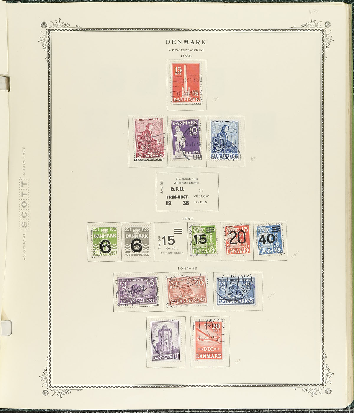 Bankers box with an assortment of Europe-strong albums (but with representation from other regions). In no particular order are a couple of groups of Russian/USSR material, a bit of French material, an old KABE album with a Swedish collection, and a Scott Specialty album holding some Denmark material, plus a stockbook of topical-rich material. There is also a bit of British Commonwealth and three albums with various quantities of worldwide material. Lots of stamps and there could be lots of hidden gems throughout. Estimate =