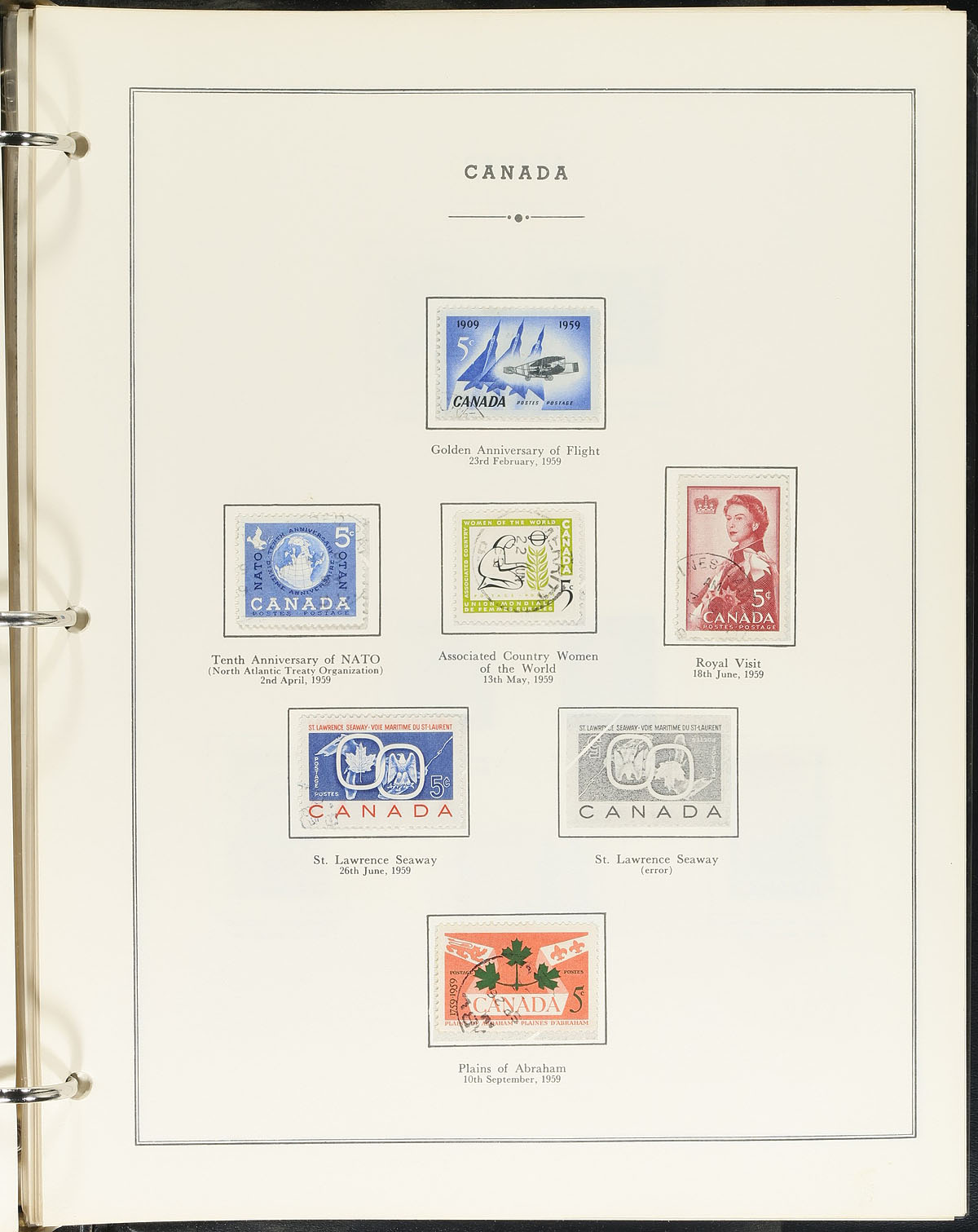 U-Haul box worth of several mostly used Canada collections and accumulations on album and stockpages, plus three boxes filled with envelopes and bundles of sorted material. While there is a bit of Victorian material, most is mid to later 20th century. Expect most to be common, with the potential for the variety or cancel hunter, with the occasional better item poking out here and there. The balance of an estate. Estimate =