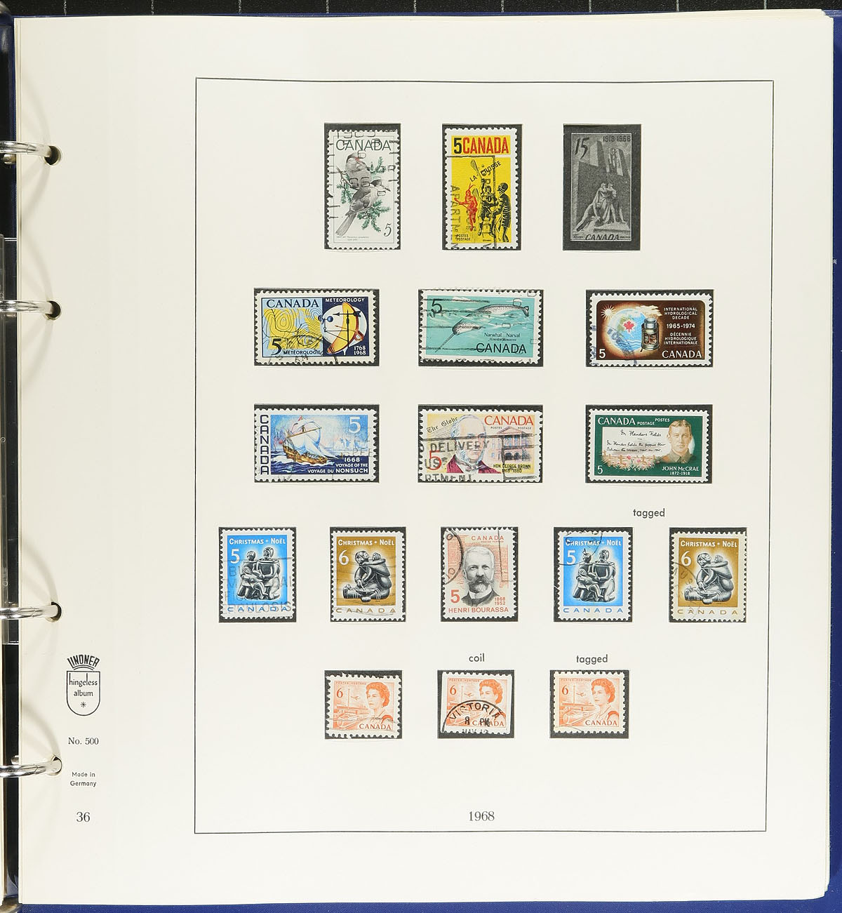 U-Haul box worth of several mostly used Canada collections and accumulations on album and stockpages, plus three boxes filled with envelopes and bundles of sorted material. While there is a bit of Victorian material, most is mid to later 20th century. Expect most to be common, with the potential for the variety or cancel hunter, with the occasional better item poking out here and there. The balance of an estate. Estimate =