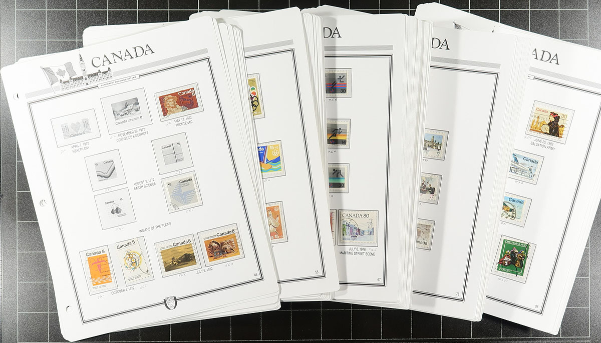U-Haul box worth of several mostly used Canada collections and accumulations on album and stockpages, plus three boxes filled with envelopes and bundles of sorted material. While there is a bit of Victorian material, most is mid to later 20th century. Expect most to be common, with the potential for the variety or cancel hunter, with the occasional better item poking out here and there. The balance of an estate. Estimate =