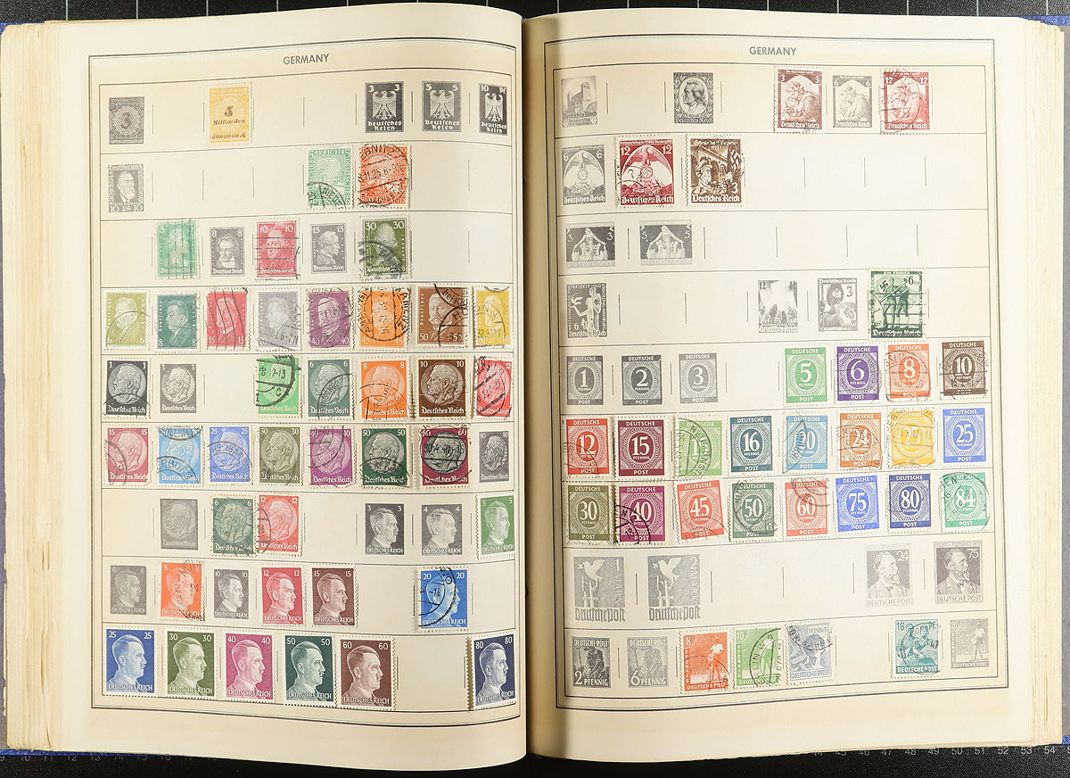 Box 1: A "wild and wonderful" estate balance filling a bankers box. In no particular order, there is a series of stockpages with British Commonwealth, strong in 1937-1960's "Common Design" issues, plus some other pages of assorted used material (the page of Cyprus was catalogued by the owner at $250+). There is a couple of Indonesia presentation folders and one from Iceland (1952) plus a small concentration of material from Malaya, Liberia, Nepal, USA plus some "Art" stamps. The sleeper here is a pair of almost 100-year-old books, one a stockbook with mint and used Europe-strong multiples and a starter collection in a notebook with some nice 1920’s-1930’s Canada (the mint appears to be heavily stuck, but we were able to free a few up, leaving them with quite light hinging). Estimate =
