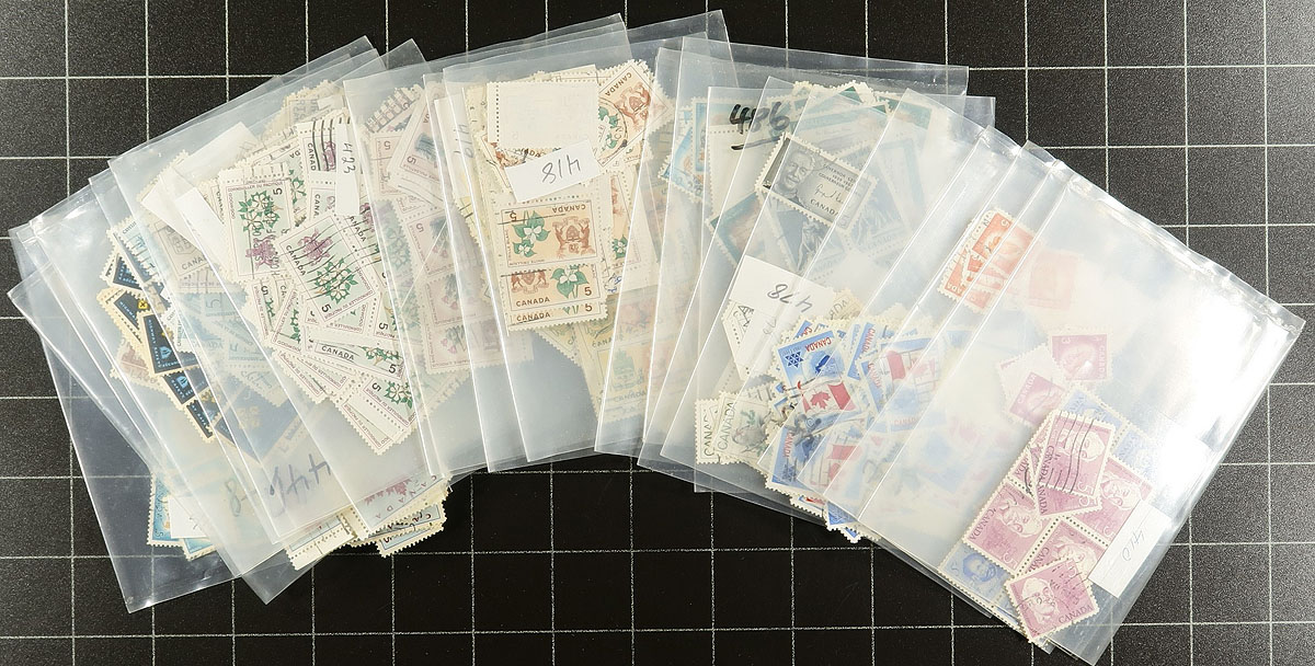 Box 2: A "wild and wonderful" estate balance filling a bankers box. This version is much wilder, with a mix of album and stock pages (noted a bunch of Great Britain), plus envelopes, packs, loose material with a number of envelopes sorted by country. Hours of fun and exploration here. Estimate =