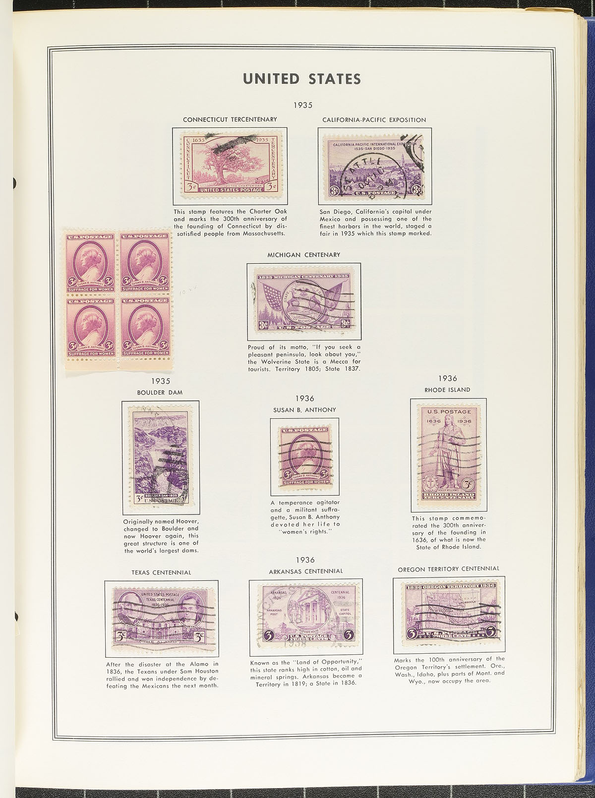 A U-Haul box overfilled with a Liberty and an All-American album, with pages and stamps into the 1970's, with the balance of the box filled with bags filled with an organized accumulation of used stamps (mostly 20th century, with some "back of the book"). As expected, most of the material is relatively common. We feel the greatest appeal will be for the precancel collector, as there is a good selection in the Liberty album and we saw some poking out of the used envelopes. There are a few pages of playing card revenue stamps, almost all with precancels and we did notice a card of WWII War Savings stamps. Patience will be required with this lot. Estimate =