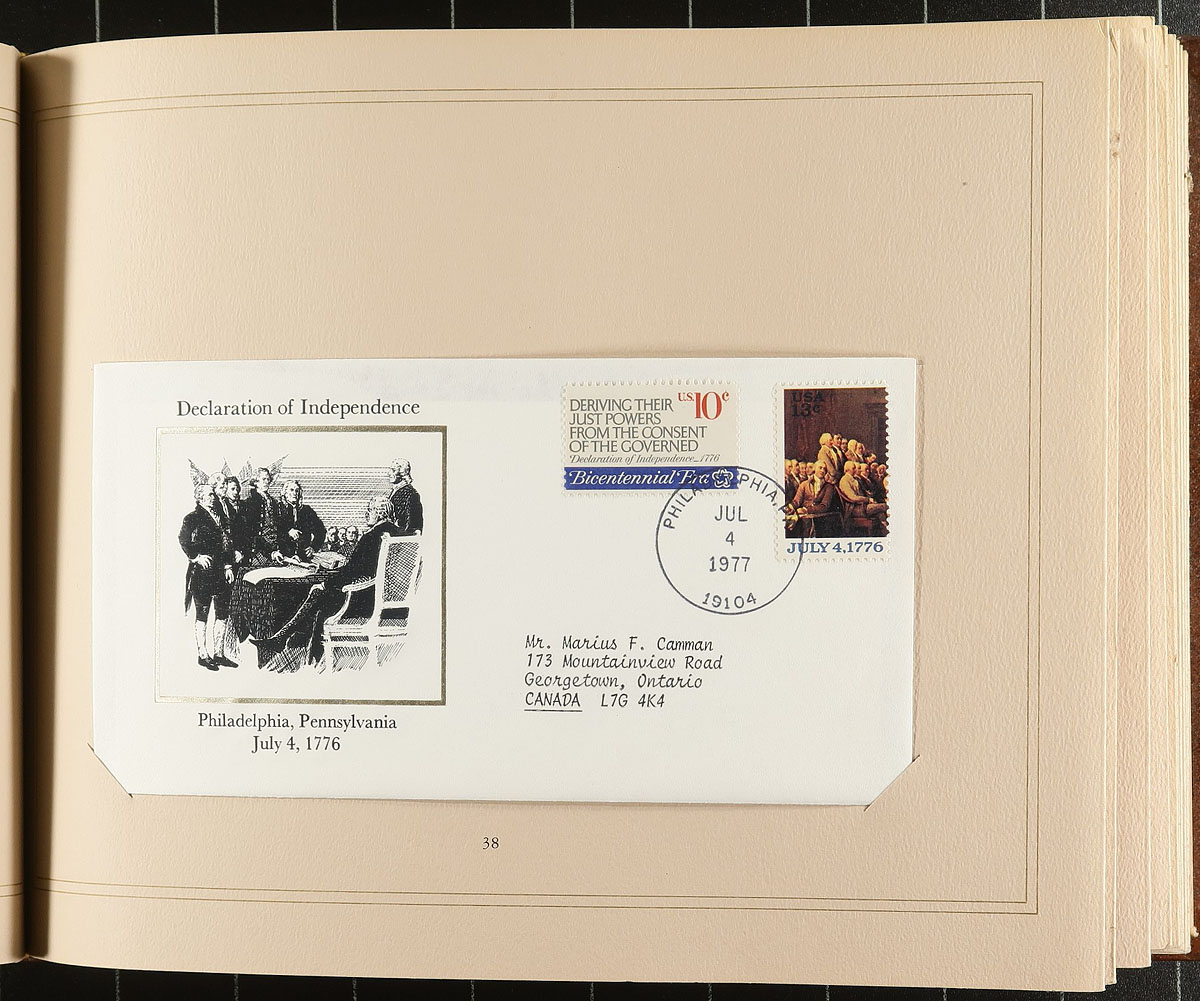 A clutch of First Day and Commemorative cover "investment" lots, now available at a small fraction of their original cost. Heavily marketed in the 1970's-1980's towards non-collectors, these covers were both attractive and breathtakingly expensive, often coming in custom made albums. As cachet collecting has expanded amongst collectors, individual covers now have appeal for collectors seeking "completeness". Or these are perfect for the collector who always wanted to own them but couldn’t bring themselves to shell out the original retail price. This U-Haul box includes the "History of Aviation" (1978, with 52 covers), UN Flags (1981, 1982, 1984, with 48 covers), US Birds and Flowers (1978, 50 covers), 1976 Christmas (Postmaster Association, 12 covers), 1976 Philatelic History of the US (50 covers), 1977 Queen Elizabeth II Silver Jubilee (Pobjoy and Fleetwood/Westminster). Estimate =