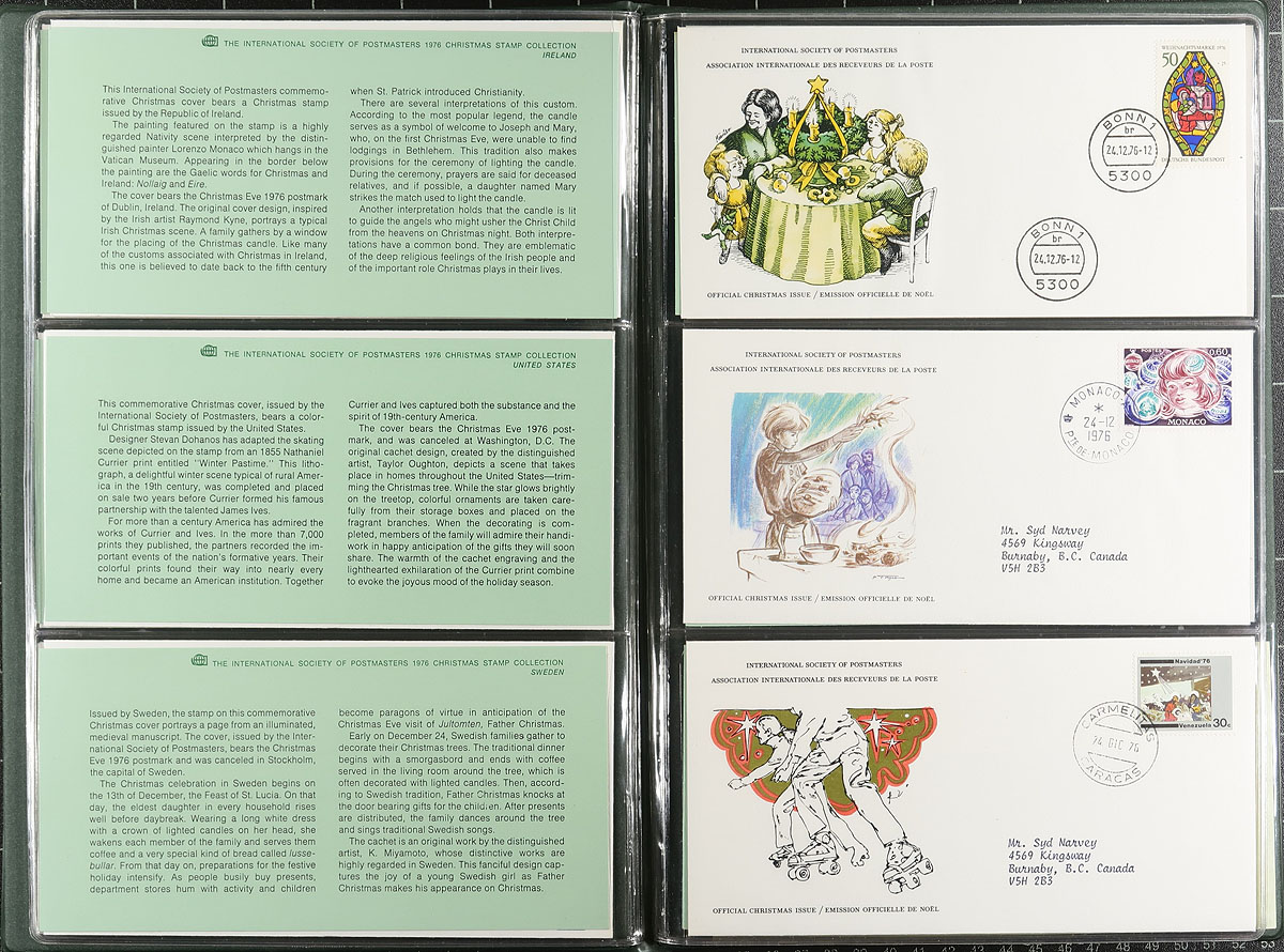 A clutch of First Day and Commemorative cover "investment" lots, now available at a small fraction of their original cost. Heavily marketed in the 1970's-1980's towards non-collectors, these covers were both attractive and breathtakingly expensive, often coming in custom made albums. As cachet collecting has expanded amongst collectors, individual covers now have appeal for collectors seeking "completeness". Or these are perfect for the collector who always wanted to own them but couldn’t bring themselves to shell out the original retail price. This U-Haul box includes the "History of Aviation" (1978, with 52 covers), UN Flags (1981, 1982, 1984, with 48 covers), US Birds and Flowers (1978, 50 covers), 1976 Christmas (Postmaster Association, 12 covers), 1976 Philatelic History of the US (50 covers), 1977 Queen Elizabeth II Silver Jubilee (Pobjoy and Fleetwood/Westminster). Estimate =
