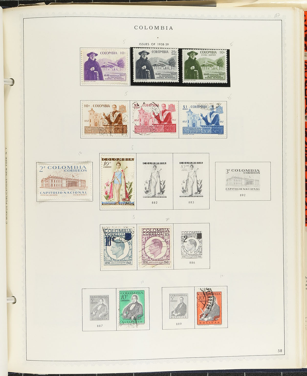A pair of 1960’s Minkus albums (with dust jackets), each moderately filled with a selection of used and mint stamps, with a bit from the back of the book and some souvenir sheets, with not much after 1970. There is some nice 19th century material, particularly for Brazil, but there could be goodies throughout. These albums were (a bit optimistically) catalogued at about US$1700.00 over 20 years ago. Estimate =