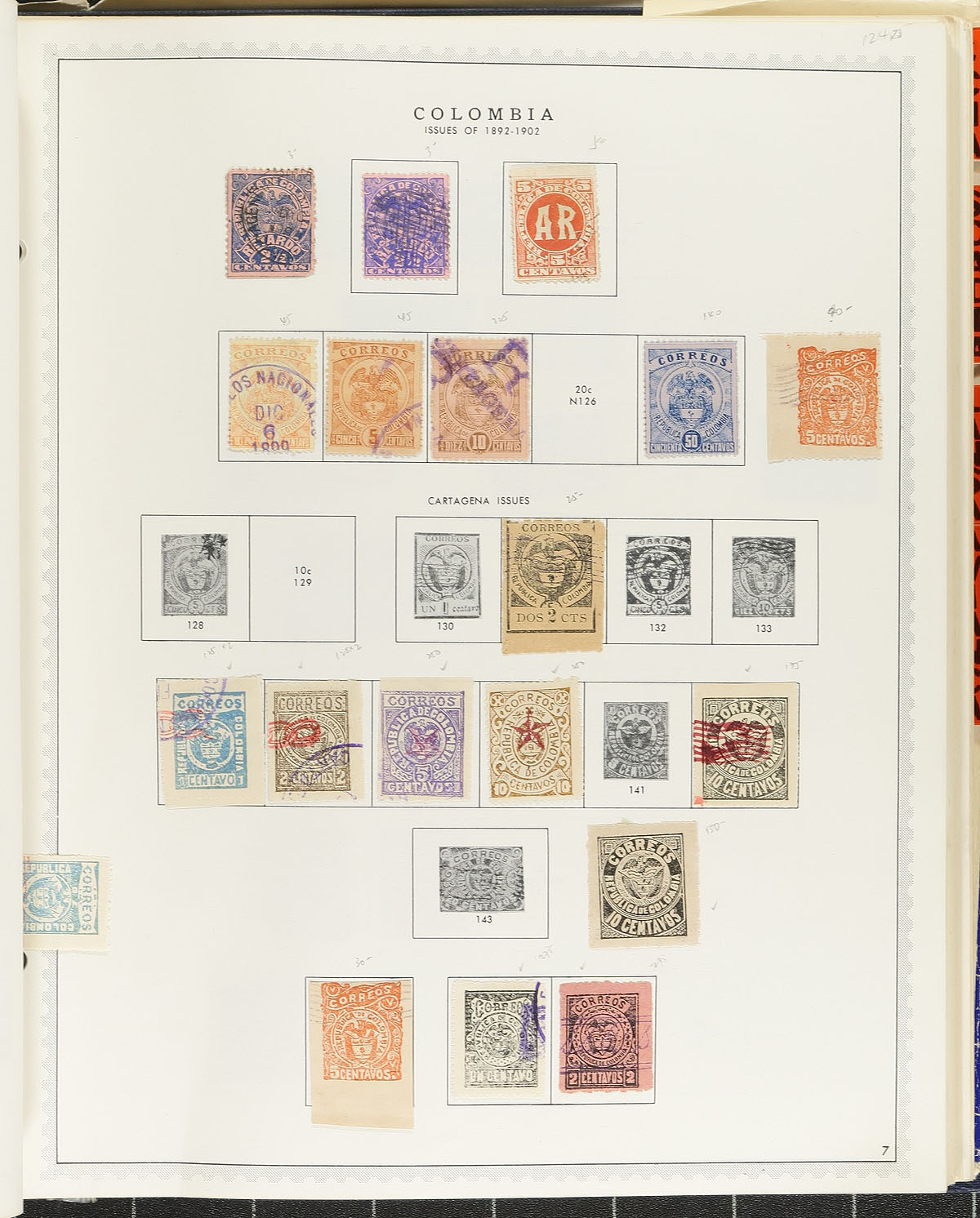 A pair of 1960’s Minkus albums (with dust jackets), each moderately filled with a selection of used and mint stamps, with a bit from the back of the book and some souvenir sheets, with not much after 1970. There is some nice 19th century material, particularly for Brazil, but there could be goodies throughout. These albums were (a bit optimistically) catalogued at about US$1700.00 over 20 years ago. Estimate =