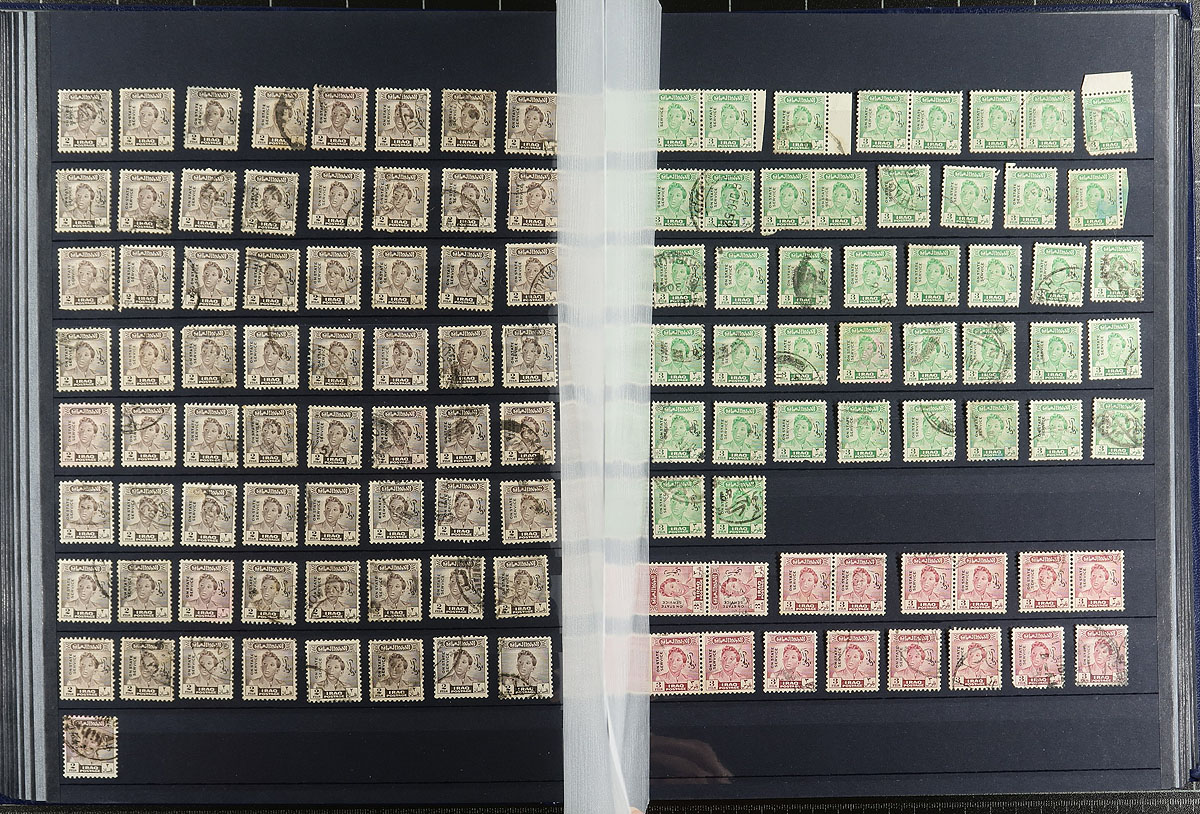 Mesopotamian delight, a mostly used stock packed into a near-new 64-black page stockbook. Starts with the earliest issues, including revaluations, "Service", with better stamps cataloguing $10-$25 seen throughout. Quantities of up to 100 of a type (but most are 2-10 each). There could be cancels or varieties lurking. A great opportunity to build a collection or stock, plus you get a $50 stockbook. Estimate =