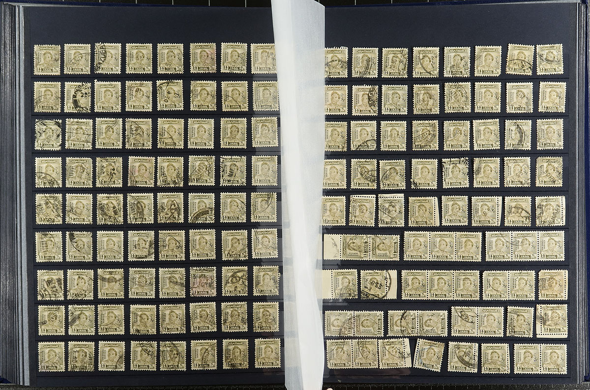 Mesopotamian delight, a mostly used stock packed into a near-new 64-black page stockbook. Starts with the earliest issues, including revaluations, "Service", with better stamps cataloguing $10-$25 seen throughout. Quantities of up to 100 of a type (but most are 2-10 each). There could be cancels or varieties lurking. A great opportunity to build a collection or stock, plus you get a $50 stockbook. Estimate =