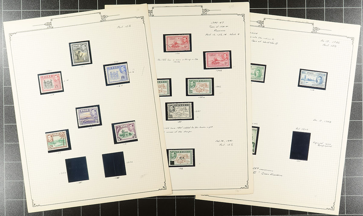 Old-school mounted collection with mint and used stamps from Queen Victoria to early QEII, with denominations to 5/-, includes some dies, perf variants and back of the book. On quadrilled pages, in black mounts, nicely annotated (ignoring the 1976 pricing). A couple of minor faults and a couple with revenue cancels not counted. Owner’s 2024 Scott US$589.25 =