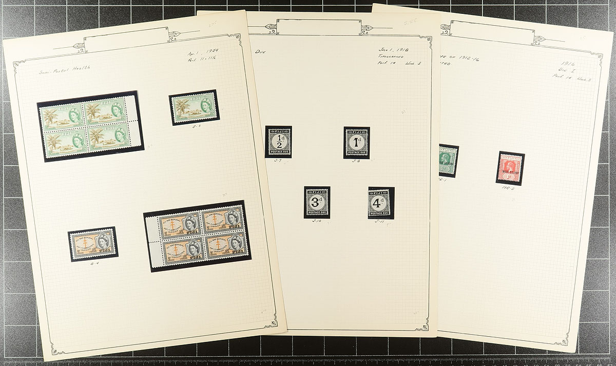 Old-school mounted collection with mint and used stamps from Queen Victoria to early QEII, with denominations to 5/-, includes some dies, perf variants and back of the book. On quadrilled pages, in black mounts, nicely annotated (ignoring the 1976 pricing). A couple of minor faults and a couple with revenue cancels not counted. Owner’s 2024 Scott US$589.25 =