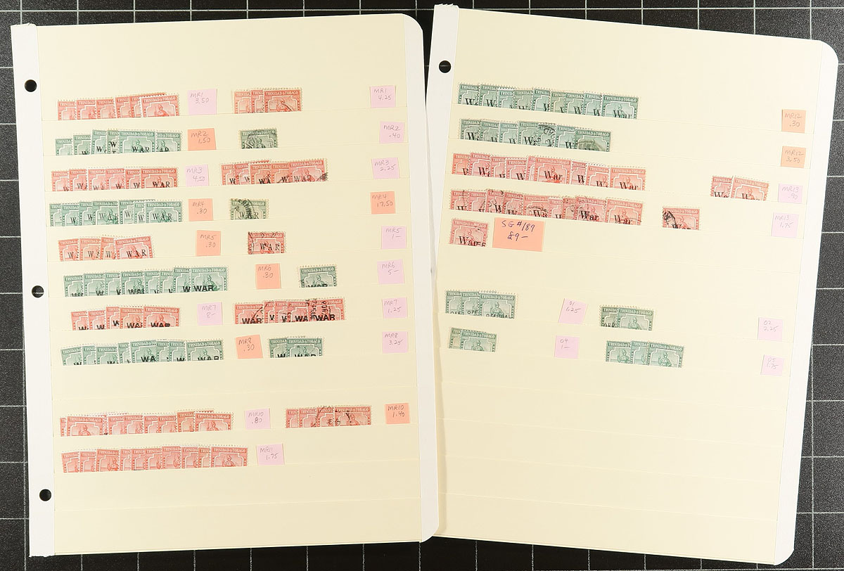 This mint and used accumulation on a couple dozen manila stock pages, represents one collector’s duplicates with lots of classic material, with lots of "seated Britannia" designs, and good coverage right into the 1990's. We noted #27 (3x used), #32 (2x used), #40a (1 mint, 2 used), 1935 Silver Jubilee (2 mint and 1 used sets), #61 (3x used), #102 (1 mint, 3 used), and the used late postage dues (#J12, J14-16). Up to a dozen of a type, all identified by Scott number and (older) catalogue values. Don’t wait for the next one. Estimate =