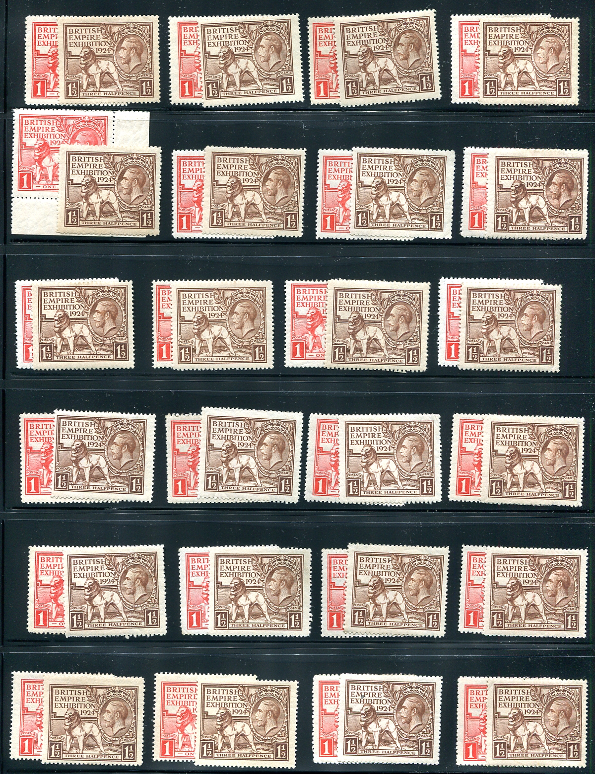 If the 1924 and 1925 British Empire Exhibition 1d and 1-1/2d "Lions" are your favourite stamps, then you are not alone. The first magnificent set was immediately adored by collectors, but the changing of the year for the following exhibition was not as well received, making it the more expensive set over time as collectors played catch up. This mint wholesale lot includes 24 complete first sets and 8 from the second. All are nicely centered, with original gum and a wide range of hinging. Perfect to add to your hoard, or to help spread the word about the beauty of this issue. 2024 Scott US$628.00 =