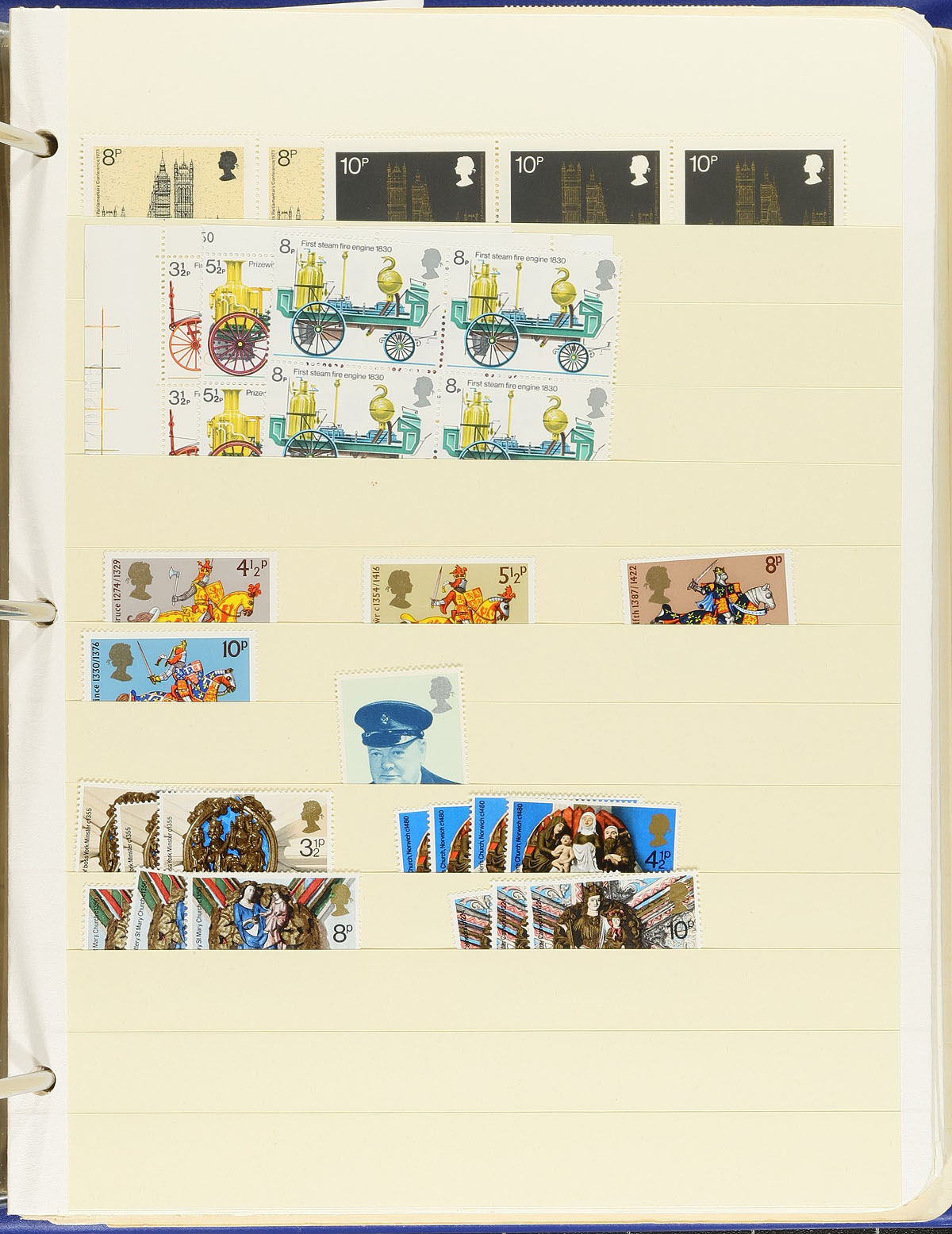 Three volume mint QEII commemorative accumulation from 1960 to 2000, with an extensive run up to 1982 with a decade (plus) gap, followed by some turn of the millennium issues. The earlier issues include a number of better "phosphor" printings and there are multiples throughout. Some of the more recent material includes "1st" and "2nd" rates which add up in value quickly. All mounted on manila stockpages with up to 50 of a type and identified by Scott number and (older) catalogue values, which won’t take much to update. Substantial value here. Estimate =