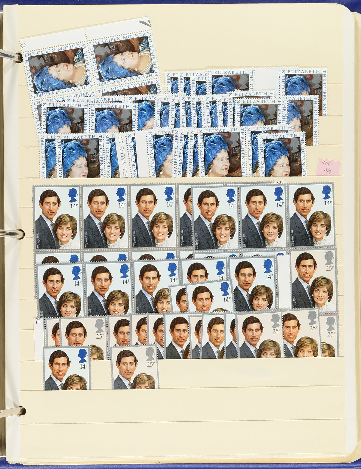 Three volume mint QEII commemorative accumulation from 1960 to 2000, with an extensive run up to 1982 with a decade (plus) gap, followed by some turn of the millennium issues. The earlier issues include a number of better "phosphor" printings and there are multiples throughout. Some of the more recent material includes "1st" and "2nd" rates which add up in value quickly. All mounted on manila stockpages with up to 50 of a type and identified by Scott number and (older) catalogue values, which won’t take much to update. Substantial value here. Estimate =