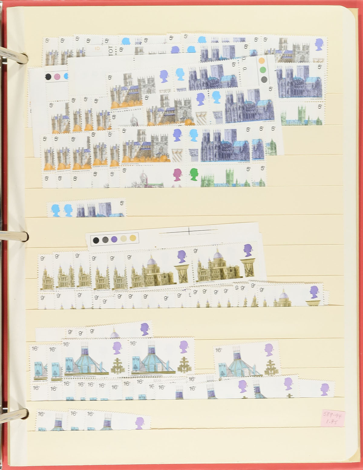 Three volume mint QEII commemorative accumulation from 1960 to 2000, with an extensive run up to 1982 with a decade (plus) gap, followed by some turn of the millennium issues. The earlier issues include a number of better "phosphor" printings and there are multiples throughout. Some of the more recent material includes "1st" and "2nd" rates which add up in value quickly. All mounted on manila stockpages with up to 50 of a type and identified by Scott number and (older) catalogue values, which won’t take much to update. Substantial value here. Estimate =