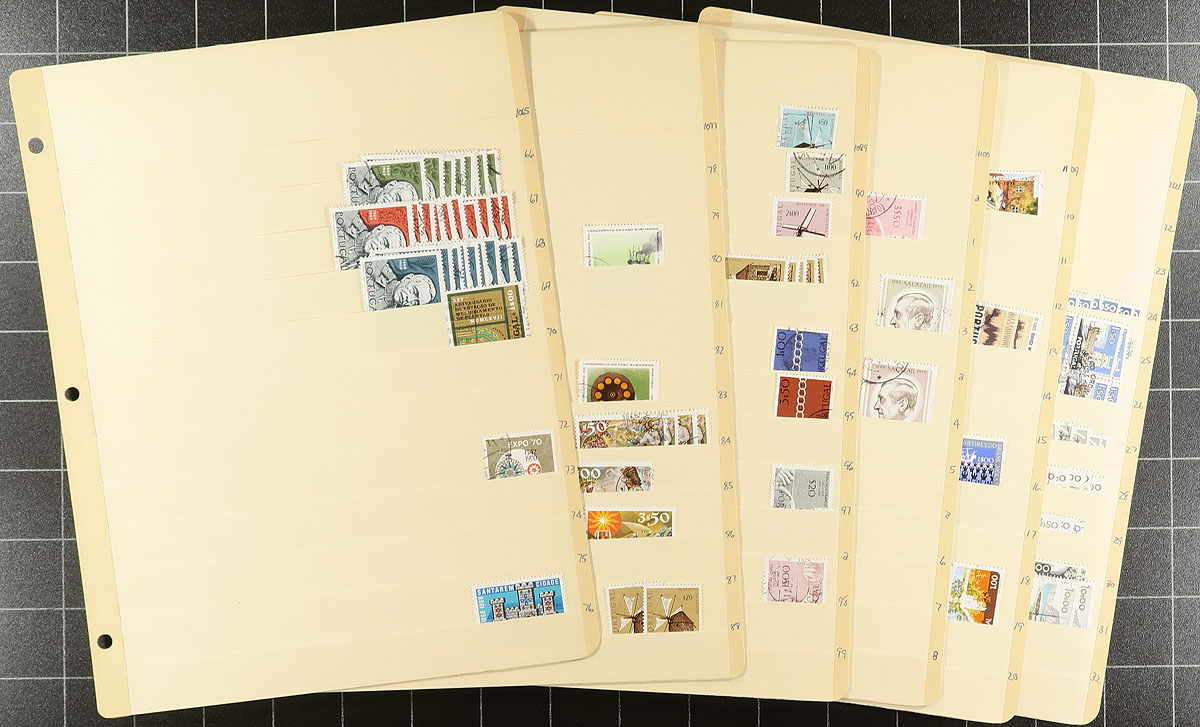 Balance of a mostly used holding of Portugal. Starting with a large binder, filled with manila stockpages neatly organized regular issues into the 1970's, often up to a dozen copies at a time, with a number of readable cancels. Next is a 16 and 32-page stockbook with emerald-green covers, laid out more like a collection (with little duplication), including more recent 1990's issues and a bit from the "back of the book" and even a touch from the Azores. A collector’s duplicates, first time on the market. Estimate =