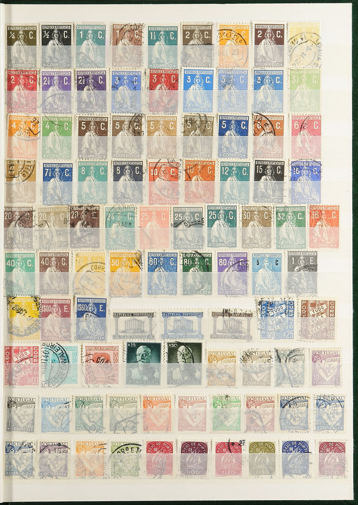 Balance of a mostly used holding of Portugal. Starting with a large binder, filled with manila stockpages neatly organized regular issues into the 1970's, often up to a dozen copies at a time, with a number of readable cancels. Next is a 16 and 32-page stockbook with emerald-green covers, laid out more like a collection (with little duplication), including more recent 1990's issues and a bit from the "back of the book" and even a touch from the Azores. A collector’s duplicates, first time on the market. Estimate =