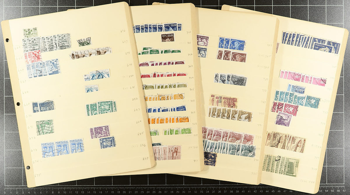 Balance of a mostly used holding of Portugal. Starting with a large binder, filled with manila stockpages neatly organized regular issues into the 1970's, often up to a dozen copies at a time, with a number of readable cancels. Next is a 16 and 32-page stockbook with emerald-green covers, laid out more like a collection (with little duplication), including more recent 1990's issues and a bit from the "back of the book" and even a touch from the Azores. A collector’s duplicates, first time on the market. Estimate =