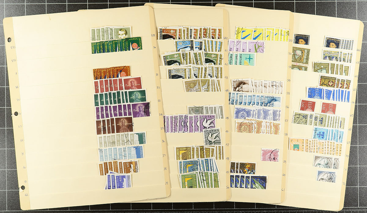 Balance of a mostly used holding of Portugal. Starting with a large binder, filled with manila stockpages neatly organized regular issues into the 1970's, often up to a dozen copies at a time, with a number of readable cancels. Next is a 16 and 32-page stockbook with emerald-green covers, laid out more like a collection (with little duplication), including more recent 1990's issues and a bit from the "back of the book" and even a touch from the Azores. A collector’s duplicates, first time on the market. Estimate =