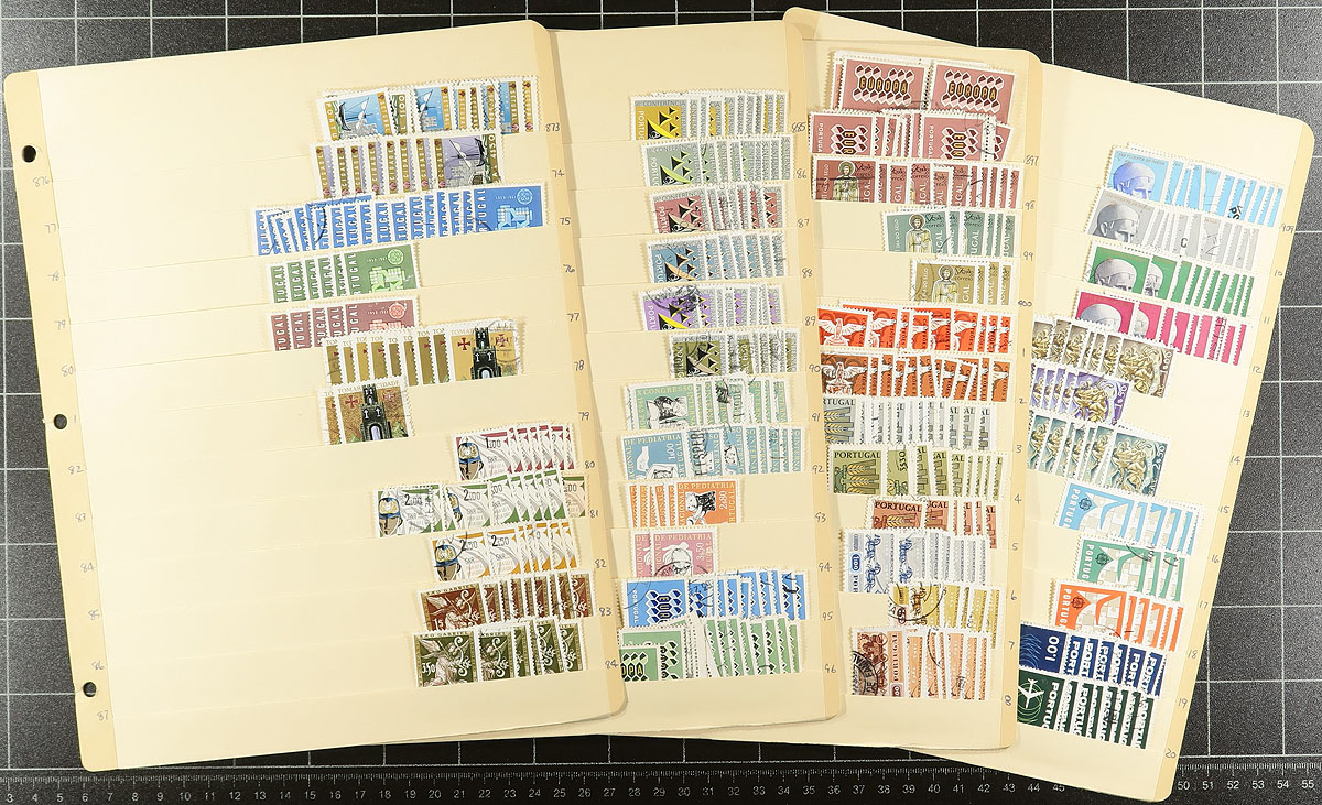 Balance of a mostly used holding of Portugal. Starting with a large binder, filled with manila stockpages neatly organized regular issues into the 1970's, often up to a dozen copies at a time, with a number of readable cancels. Next is a 16 and 32-page stockbook with emerald-green covers, laid out more like a collection (with little duplication), including more recent 1990's issues and a bit from the "back of the book" and even a touch from the Azores. A collector’s duplicates, first time on the market. Estimate =
