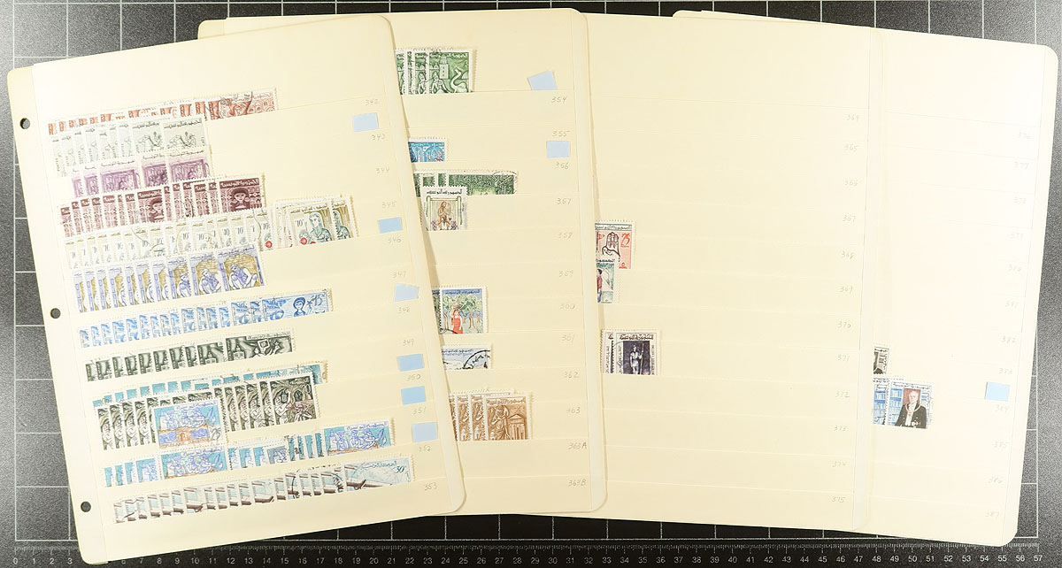 Substantial wholesale used accumulation, covering a century (1888-1990) and neatly organized on 100 manila stockpages (in two large binders), with a good range of material to the mid-1970's, the balance and the back of the book is a bit scattered. There are up to a dozen of a type, with values to $15.00 per stamps (e.g. #4, #363B). The only 4 postal history items in the lot are a set of airmail stamps on 1932 Regional Exhibition postcards, with the stamps tied to the view side (these sets typically retail at over $100.00). An unusual North Africa holding, which is NOT a dealer stock, but a collector’s holding. Estimate =