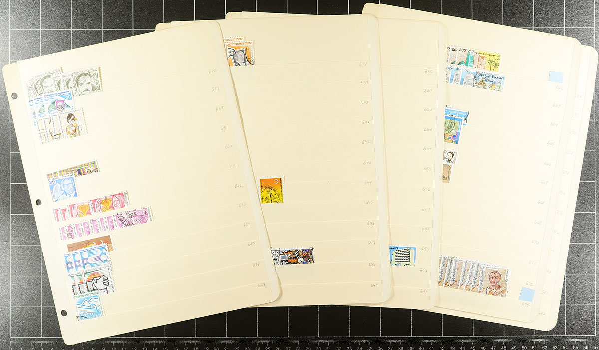 Substantial wholesale used accumulation, covering a century (1888-1990) and neatly organized on 100 manila stockpages (in two large binders), with a good range of material to the mid-1970's, the balance and the back of the book is a bit scattered. There are up to a dozen of a type, with values to $15.00 per stamps (e.g. #4, #363B). The only 4 postal history items in the lot are a set of airmail stamps on 1932 Regional Exhibition postcards, with the stamps tied to the view side (these sets typically retail at over $100.00). An unusual North Africa holding, which is NOT a dealer stock, but a collector’s holding. Estimate =