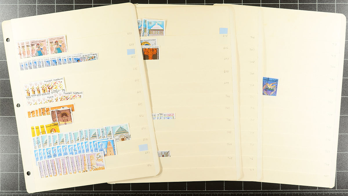 Substantial wholesale used accumulation, covering a century (1888-1990) and neatly organized on 100 manila stockpages (in two large binders), with a good range of material to the mid-1970's, the balance and the back of the book is a bit scattered. There are up to a dozen of a type, with values to $15.00 per stamps (e.g. #4, #363B). The only 4 postal history items in the lot are a set of airmail stamps on 1932 Regional Exhibition postcards, with the stamps tied to the view side (these sets typically retail at over $100.00). An unusual North Africa holding, which is NOT a dealer stock, but a collector’s holding. Estimate =