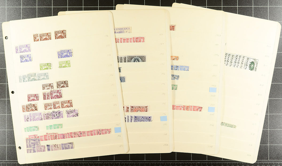 Substantial wholesale used accumulation, covering a century (1888-1990) and neatly organized on 100 manila stockpages (in two large binders), with a good range of material to the mid-1970's, the balance and the back of the book is a bit scattered. There are up to a dozen of a type, with values to $15.00 per stamps (e.g. #4, #363B). The only 4 postal history items in the lot are a set of airmail stamps on 1932 Regional Exhibition postcards, with the stamps tied to the view side (these sets typically retail at over $100.00). An unusual North Africa holding, which is NOT a dealer stock, but a collector’s holding. Estimate =