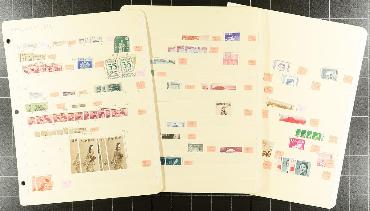 This mint accumulation represents three quarters of a century from 1927 onwards, all neatly organized and identified and priced by Scott catalogue. Mostly regular issues, both definitives and commemoratives, generally 1-10 of a type with some blocks. While most are hinged, their overall appearance and condition is excellent, with lots of $5-$15 items. We note #422 (x5), #479 (usual heavy gum bends), some better post-war definitives, National Parks and a bit of modern material (about $50.00 face value). Finishes with a bit of semi-postal and airmail material. All encompassed within a binder with 27 manila stockpages. Lots of value here, ideal for collector and dealer, alike. Estimate =