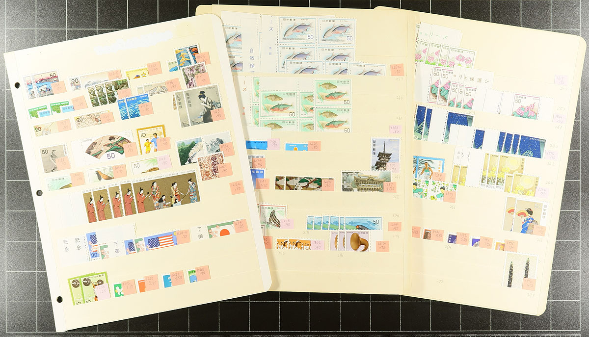 This mint accumulation represents three quarters of a century from 1927 onwards, all neatly organized and identified and priced by Scott catalogue. Mostly regular issues, both definitives and commemoratives, generally 1-10 of a type with some blocks. While most are hinged, their overall appearance and condition is excellent, with lots of $5-$15 items. We note #422 (x5), #479 (usual heavy gum bends), some better post-war definitives, National Parks and a bit of modern material (about $50.00 face value). Finishes with a bit of semi-postal and airmail material. All encompassed within a binder with 27 manila stockpages. Lots of value here, ideal for collector and dealer, alike. Estimate =