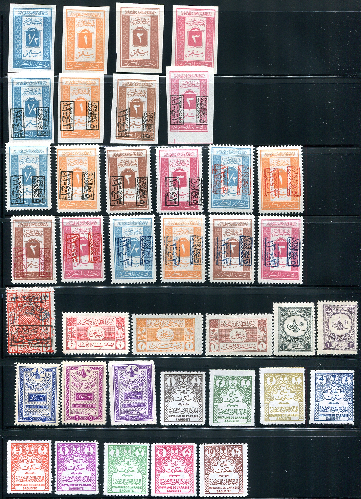 Mint selection of "Jedda" and "Nejdi" postage dues plus some official stamps. The first two sets from 1925 are imperforate (mentioned as a footnote in Scott, with varying degrees of gum). This is followed by various overprints and purpose printed stamps. Most of the value is in the officials, with #O6 and O21-O28 & O30. Great appearance. 2024 Scott US$360.25 =