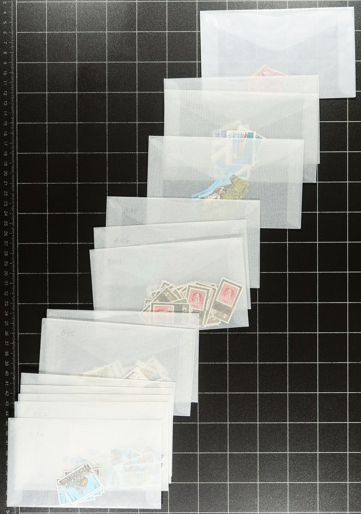 A shoebox stuffed with a wholesale lot of used "back of the book", the strongest is the official overprints, including hundreds, if not thousands of various denominations from the 1940 Centenary set (#O76/O86). These came out of New Zealand 25+ years ago and were quite popular for approval sellers or packet builders. There is a bit of semi-postal ("health"), life insurance and newspaper stamps along with a couple of "Arms" postal fiscals. Estimate =