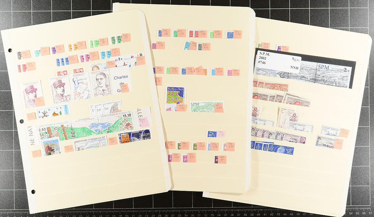 A lightly duplicated accumulation of mint SPM regular, semi-postal and air mail issues up to the early 2000's. Lots of classic "Fisherman", "Seagull", "Landscape" and "Schooner" with lots of nice post-war material, with sets and singles of up to $30.00 catalogue value. Perfect for building a collection and selling what is left to recoup your costs. Overall condition is excellent, and expect the stamps to be hinged, a few with remnants (and yes, there is some never hinged material here). All neatly identified by Scott numbers and catalogue prices on manila stockpages. Estimate =