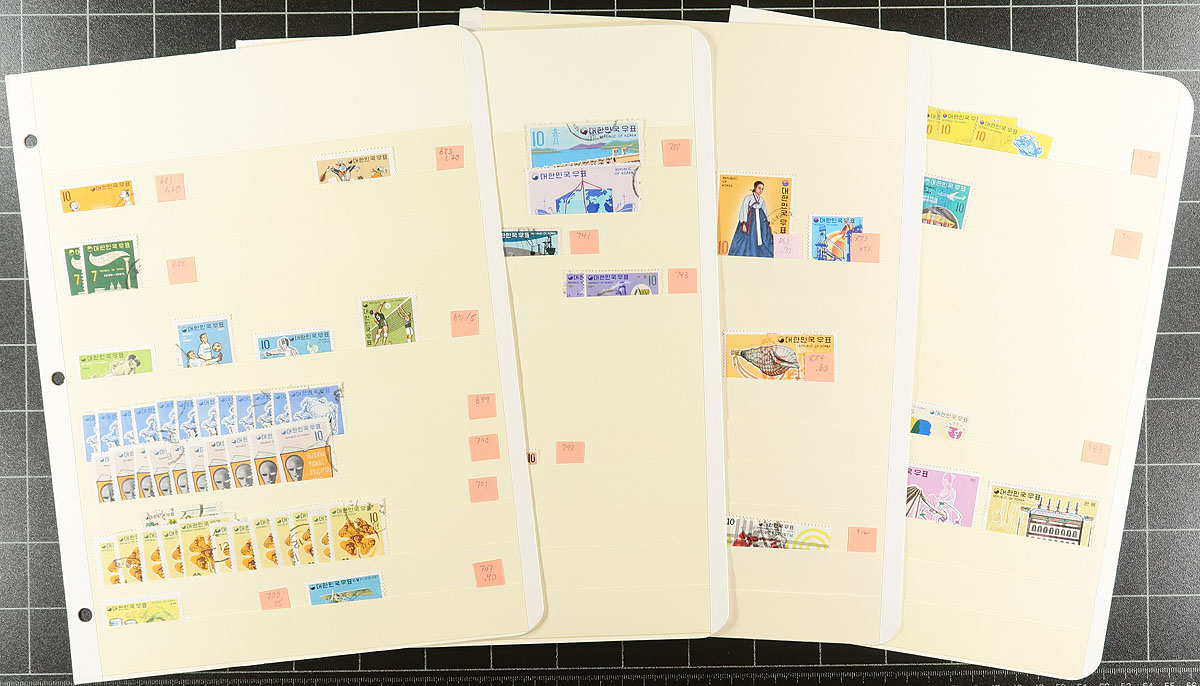 Substantial stock of used, mostly 20th century Korean issues accumulated and organized by a collector, and available for the first time. The early is a bit hit or miss (note #79 x7), and then strong post-WWII to the 1990’s, where it looks more like a collection than a stock. With a good range of semi-postals and airmails (#C30). Up to 20 of a type, catalogue values of individual items to $40.00. All are neatly organized into 50 manila stockpages identified by Scott number and (a slightly older) catalogue values. Condition is better than average and there may also be potential for the cancel collector. Substantial catalogue value here. Estimate =