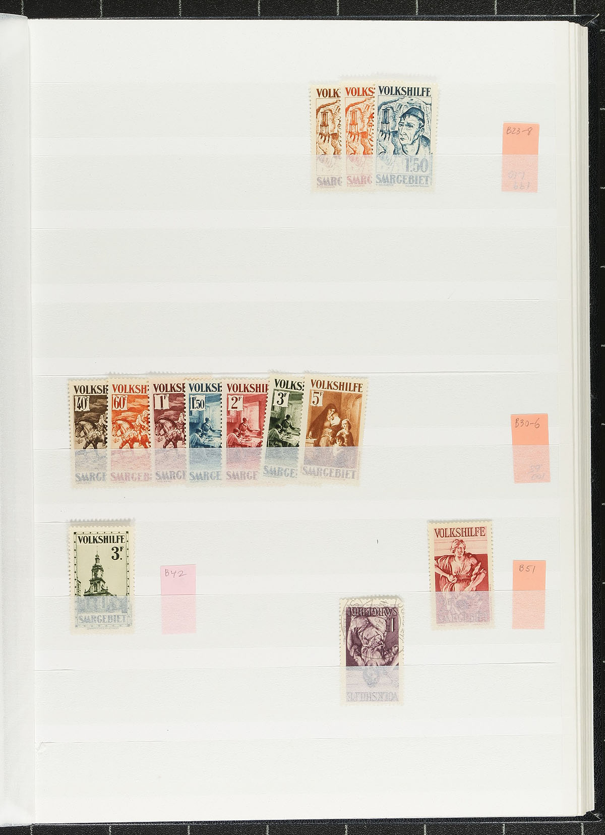 Nice accumulation of "back of the book", of the French issues over a 30+ year period starting in the 1920's. The semi-postals includes mint sets #B16-B22 and #B30-B36 and a mint single of #B42 (over $325.00 catalogue value here), plus used singles of #B54-B55 (5 each), along with a scattering of sets and singles. The airmails are fairly complete, noting #C11 (3x used), finishing with a nice run of overprinted official stamps as well as the "Coat of Arms" design (noting #O27 used and #O38). Quantities range from 1-15 of a type, with the items nicely identified by their Scott catalogue values. The catalogue values are older and a touch higher than current values, but there is still lots of value here. Noted many nice cancel amongst the used. All housed in a black covered 16-page Uni-Safe stockbook. Estimate =